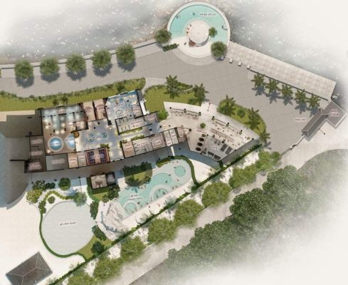 Hồ bơi trung tâm và các hồ bơi riêng biệt.